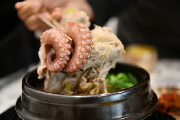수라삼계탕은 직접 우려낸 한방 약재 육수로 끓여 국물이 맑고 깊은 맛을 내는 정직한 삼계탕 전문점이다. 기본 삼계탕 외에도 녹두, 흑임자, 전복, 문어, 능이 등 다양한 메뉴를 취향대로 즐길 수 있다. 화학조미료 없이 재료 본연의 맛으로 끓여내는 것이 특징이다. 유기그릇 사용과 무료로 제공되는 강황찰밥에서도 손님을 생각하는 사장님의 깊은 정성과 철학이 드러난다. 깔끔하고 건강한 한 그릇을 찾는 이들에게 오래도록 사랑받는 곳이다. 정성이 곧 보약이 되는 맛집이다. |